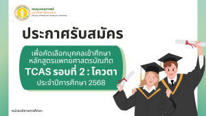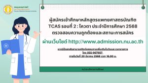 - ผู้สมัครเข้าศึกษาหลักสูตรแพทยศาสตรบัณฑิต TCAS รอบที่ 2: โควตา ประจำปีการศึกษา 2568 ตรวจสอบความถูกต้องและสถานะการสมัคร