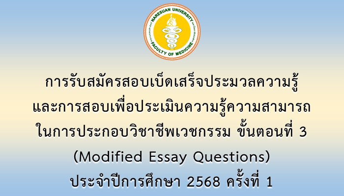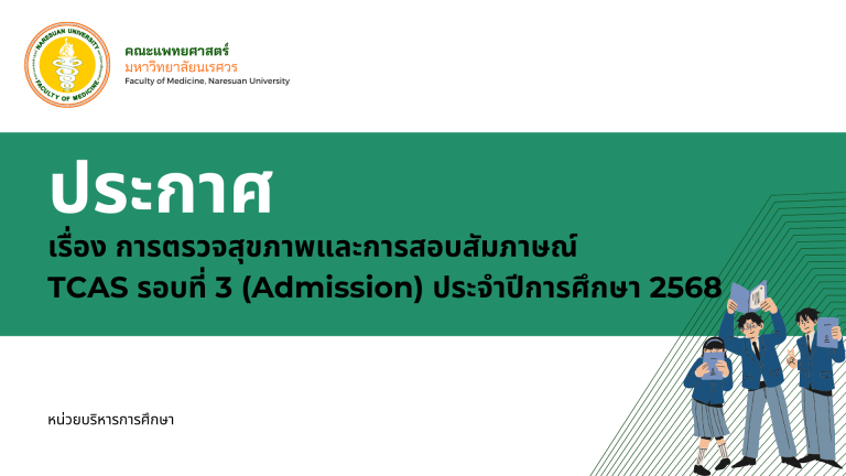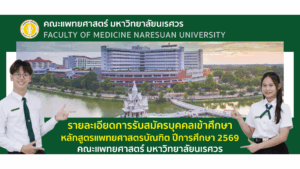 - ประกาศรับสมัครบุคคลเพื่อเข้าศึกษาในมหาวิทยาลัยนเรศวร ระดับปริญญาตรี หลักสูตรแพทยศาสตรบัณฑิต ประจำปีการศึกษา 2568