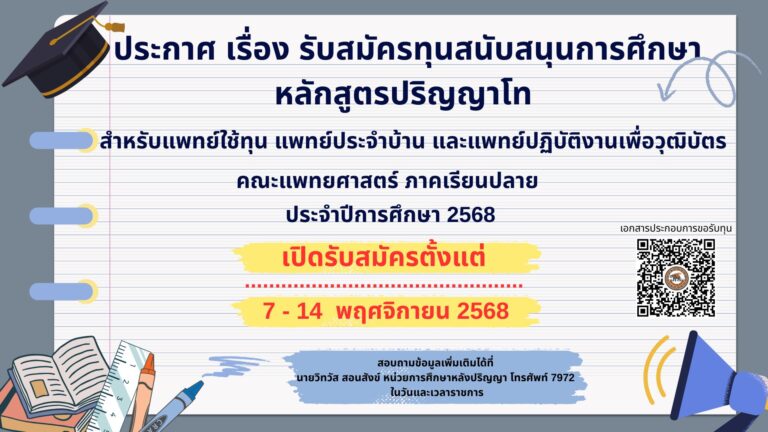 - รับสมัครบุคคลเข้าศึกษา หลักสูตรแพทยศาสตรบัณฑิต ประจำปีการศึกษา 2569
