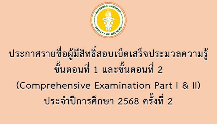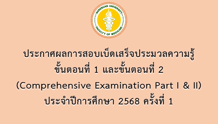 ประกาศผลการสอบเบ็ดเสร็จประมวลความรู้ ขั้นตอนที่ 1 และ ขั้นตอนที่ 2 (Comprehensive Examination Part I & II) ประจำปีการศึกษา 2568 ครั้งที่ 1