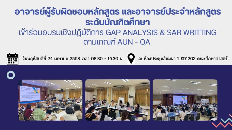 ประกันคุณภาพการศึกษา อาจารย์ผู้รับผิดชอบหลักสูตร และอาจารย์ประจำหลักสูตรระดับบัณฑิตศึกษา เข้าร่วมอบรมเชิงปฏิบัติการ Gap Analysis & SAr writing ตามเกณฑ์ AUN – QA28/04/202520/06/2025