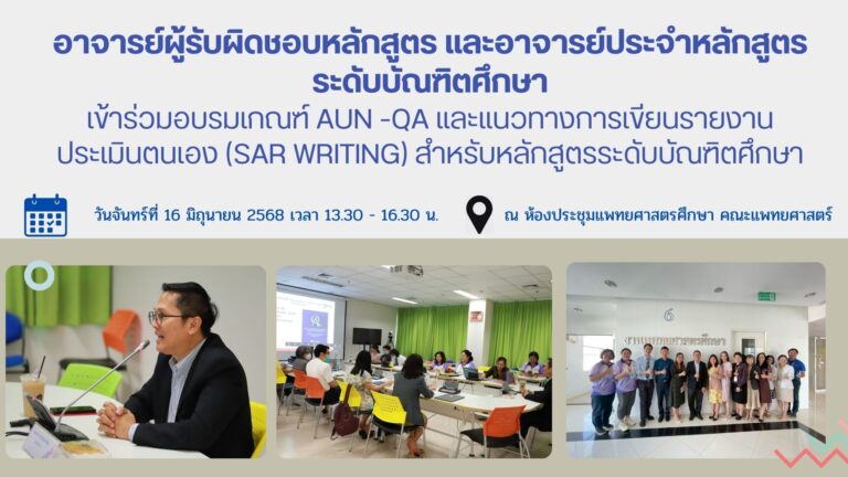 ข่าวสาร กิจกรรมอบรมเกณฑ์ AUN – QA และแนวทางการเขียนรายงานประเมินตนเอง (SAR Writing) สำหรับหลักสูตรระดับบัณฑิตศึกษา30/05/202519/09/2025