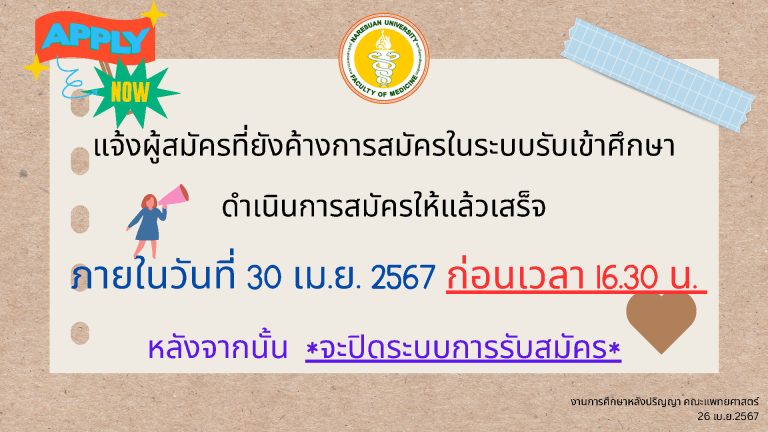 ข่าวสาร แจ้งปิดระบบการรับสมัครหลักสูตรปรัชญาดุษฎีบัณฑิต สาขาวิชาระบาดวิทยาคลินิกและวิจัย26/04/202425/02/2025