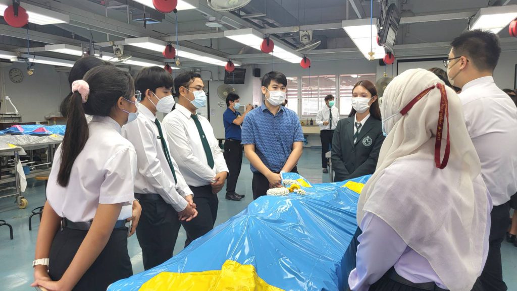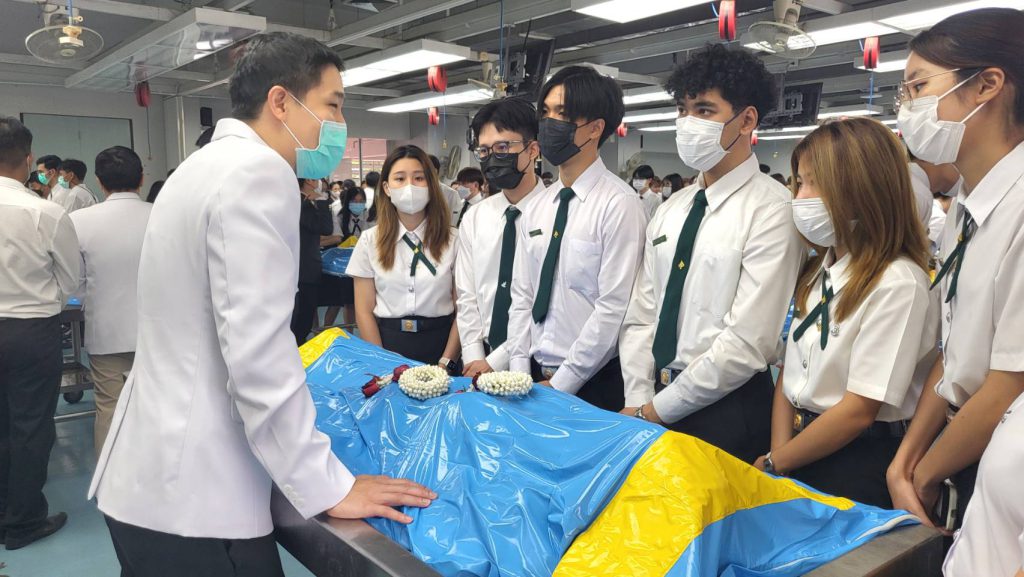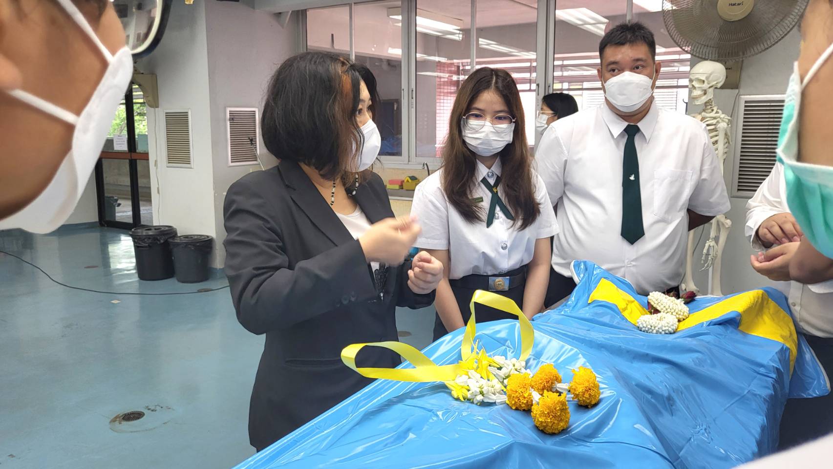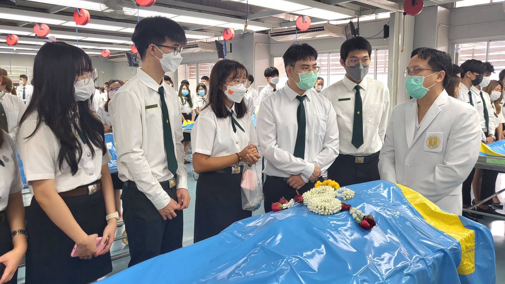 โดยหลังจากกล่าวคำปฏิญาณฯ นิสิตและคณาจารย์ร่วมวางพวงมาลัยบนร่างอาจารย์ใหญ่ โดยเมื่อเสร็จพิธีการคณาจารย์ช่วยแนะแนวทางการเรียนในแต่ละโต๊ะปฏิบัติการ เพื่อให้แนวทางในการเรียนรู้การศึกษาวิชาชีพแพทย์ต่อไป