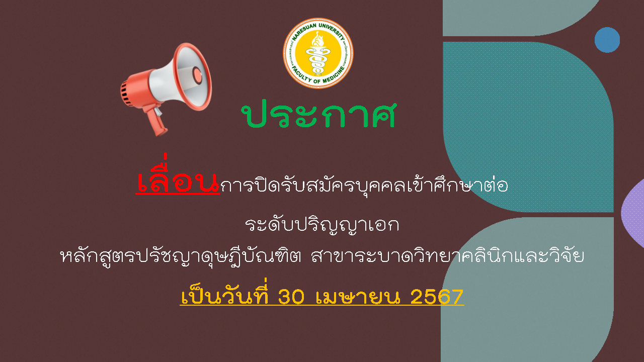 ประกาศเลื่อนการปิดรับสมัครบุคคลเข้าศึกษาต่อ ระดับปริญญาเอก หลักสูตรปรัชญาดุษฎีบัณฑิต สาขาระบาดวิทยาคลินิกและวิจัย