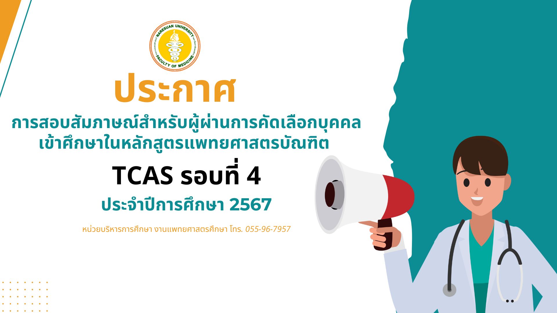 ให้ผู้ผ่านการคัดเลือกบุคคลเข้าศึกษาในหลักสูตรแพทยศาสตรบัณฑิต ผ่านระบบ TCAS รอบที่ 4 ประจำปีการศึกษา 2567 ให้ดำเนินการดังนี้