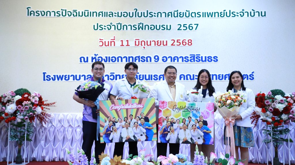วันพุธที่ 11 มิถุนายน 2568 ผู้ช่วยศาสตราจารย์ แพทย์หญิงพิริยา นฤขัตรพิชัย คณบดีคณะแพทยศาสตร์ เป็นประธานและกล่าวปัจฉิมโอวาทในโครงการปัจฉิมนิเทศและมอบใบประกาศนียบัตรแพทย์ประจำบ้าน ประจำปีการฝึกอบรม 2567 ให้กับแพทย์ที่ผ่านการฝึกอบรมหลักสูตรแพทย์ประจำบ้าน จำนวนทั้งสิ้น 10 คน จาก 4 สาขา ได้แก่ สาขากุมารเวชศาสตร์ 2 คน สาขาอายุรศาสตร์ 2 คน สาขาศัลยศาสตร์ 4 คน และสาขาเวชศาสตร์ครอบครัว 2 คน โดยจัดขึ้น ณ ห้องประชุมเอกาทศรถ 9ชั้น 3 อาคารสิรินธร คณะแพทยศาสตร์ มหาวิทยาลัยนเรศวร