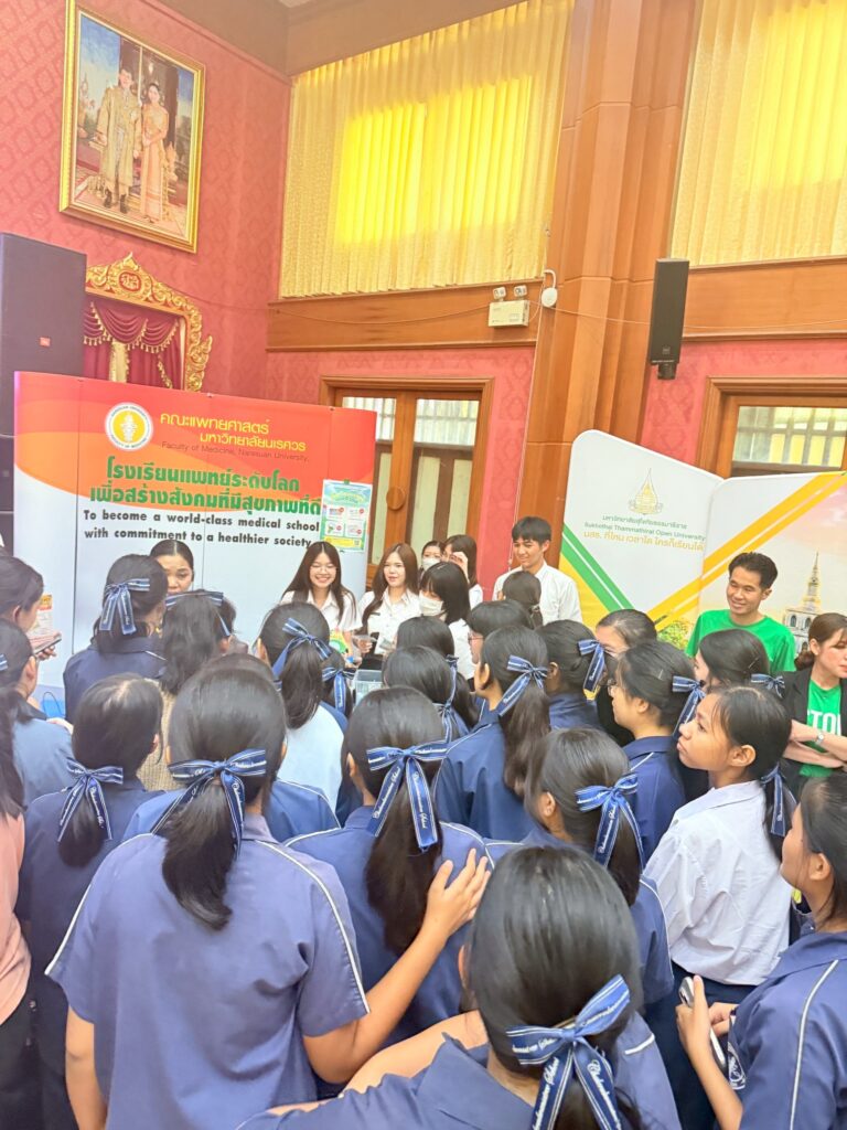 คณะแพทยศาสตร์ มหาวิทาลัยนเรศวร เข้าร่วมจัดกิจกรรมนิทรรศการแนะแนวการศึกษาต่อและอาชีพ ให้แก่นักเรียนชั้นมัธยมศึกษาปีที่ 6 ปีการศึกษา 2568 จำนวน 563 คน ในวันอังคารที่ 16 กันยายน 2568 ณ หอประชุมราชานุเคราะห์ 3 โรงเรียนเฉลิมขวัญสตรี จังหวัดพิษณุโลก เพื่อให้นักเรียนเตรียมความพร้อมในการศึกษาต่อในระบบ TCAS มีโลกทัศน์ด้านการศึกษาและอาชีพที่กว้างไกล เกิดแรงนั้นดาลใจในการพัฒนาตนเอง และวางแผนการใช้ชีวิตอย่างมีคุณค่า โดยเริ่มต้นจากแนวคิดและค่านิยมที่ถูกต้อง รู้แนวโน้มความต้องการของตลาดแรงงานและข้อมูลอื่นๆ ที่เกี่ยวข้อง เพื่อใช้เป็นแนวทางในการเลือกศึกษาต่อและเลือกประกอบอาชีพที่ตรงกับความถนัดความสามารถ บุคลิกภาพของนักเรียนและสอดคล้องกับความต้องการของตลาดแรงงานในอนาคต